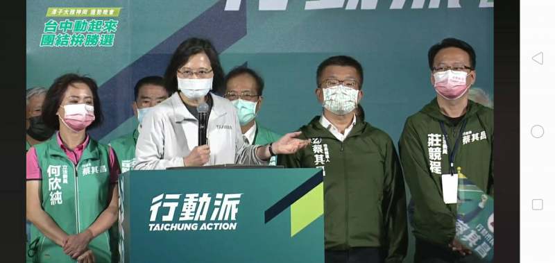 總統蔡英文與台中市的立委、議員力挺行動派的台中市長候選人蔡其昌。