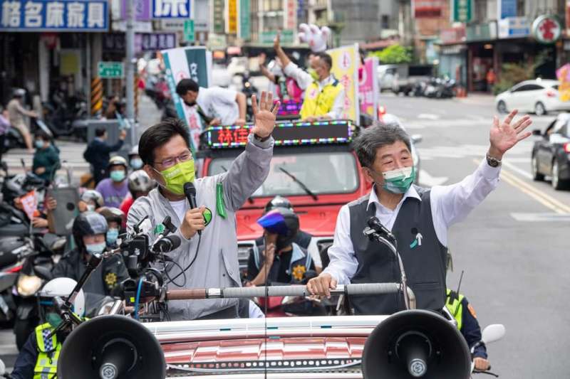 民進黨新北市長候選人林佳龍與台北市長候選人陳時中,展開「雙北龍中來.鬥陣做伙贏」車隊掃街拜票。