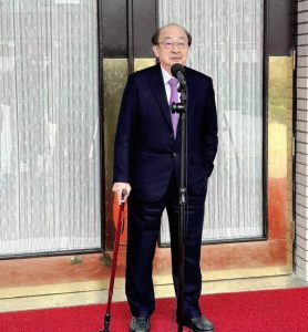 柯建銘腿部開刀以拐杖助行,自嘲是「杖義直言」。