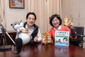 政治工作者周軒分享當年賴清德還是副總統,在兒童節前夕上蘇巧慧的節目,兩人為小朋友念故事書,教小朋友講台語的照片。(圖/周軒臉書)