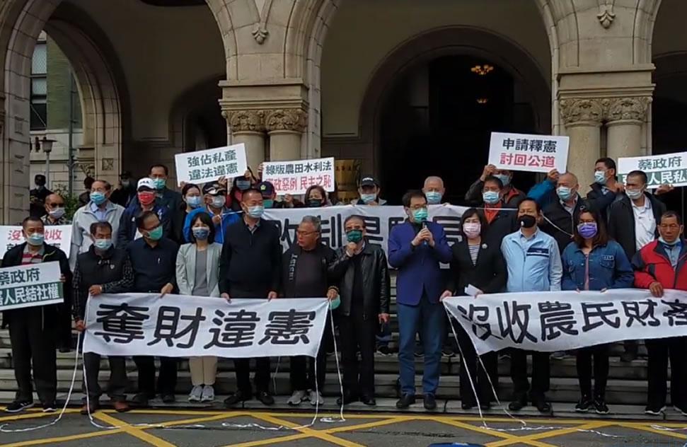 國民黨團3月5日由黨團三長、經濟委員會全體委員等前往司法院提出「農田水利法」釋憲案,國民黨團表示,民進黨以國會多數於2020年7月2日強行通過農田水利法,行政院並公布「農田水利法」自去年10月1日正式實施。政府將歷史已經超過百年以上的農田水利會法人,在沒有法律明文依據下,竟違憲違法予以消滅。在沒有徵收對價下,直接將水利會法人的財產,直接沒收納為國家財產。這種侵害人民結社權,搶奪人民財產之立法,實在大開民主人權之倒車。